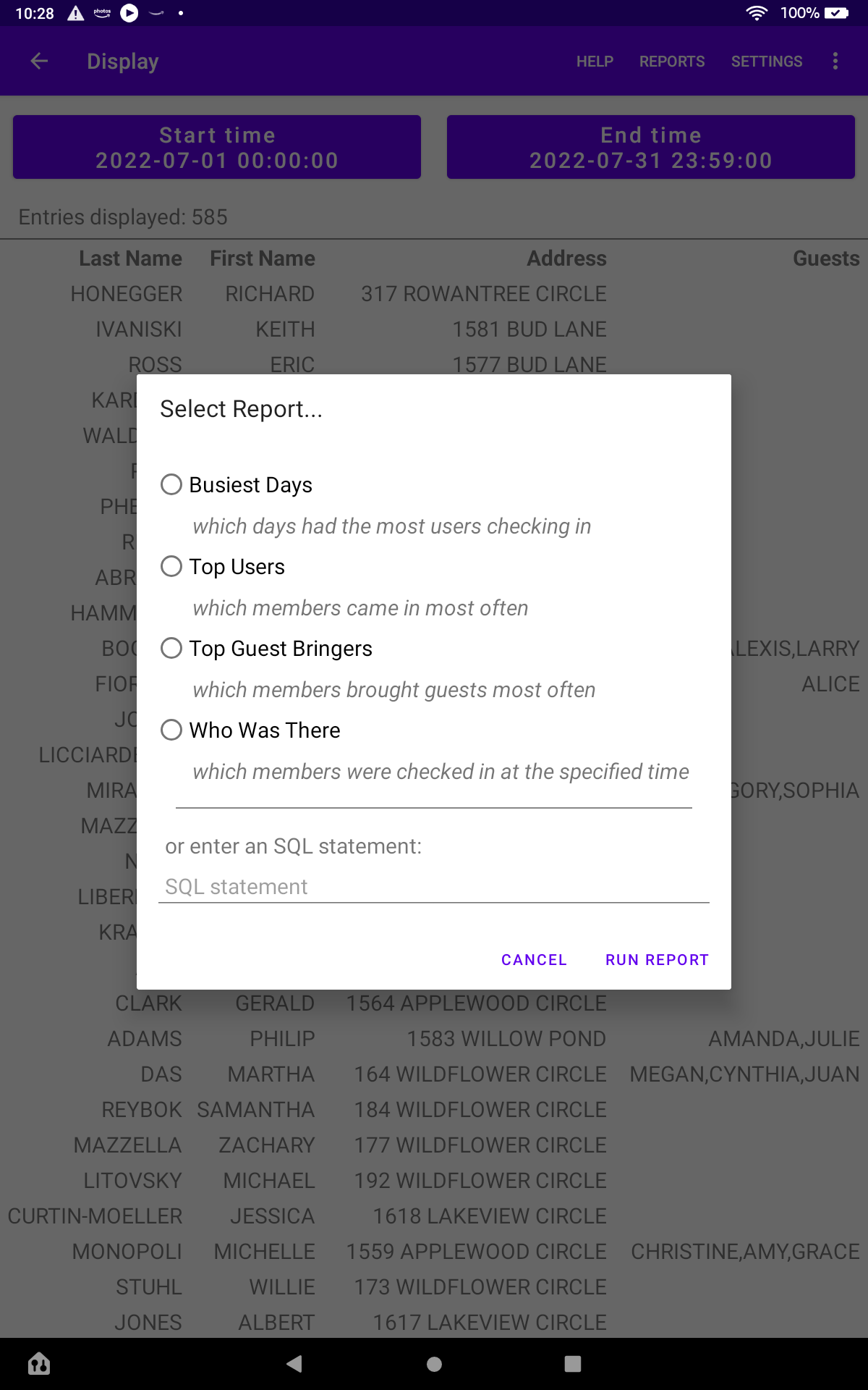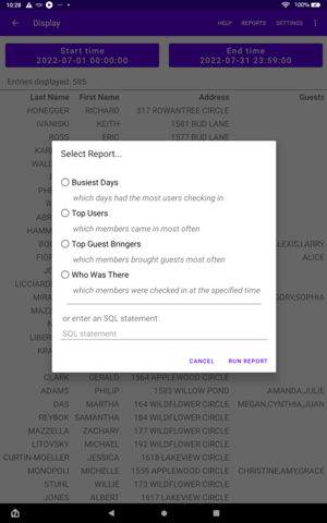 4. Who Was There: displays members that were checked in during the specified time. The list will include members that never checked out.